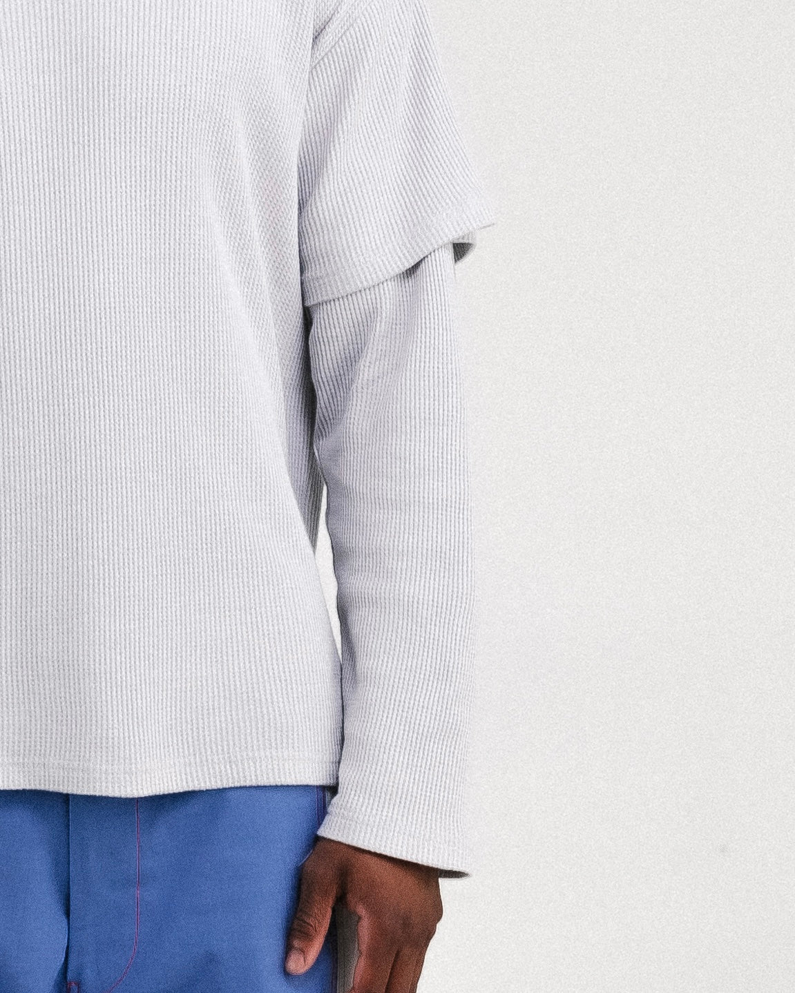 DOUBLE SLEEVE CONSTRUCTION. LONG SLEEVE IS SEWN INTO THE ARM HOLE.