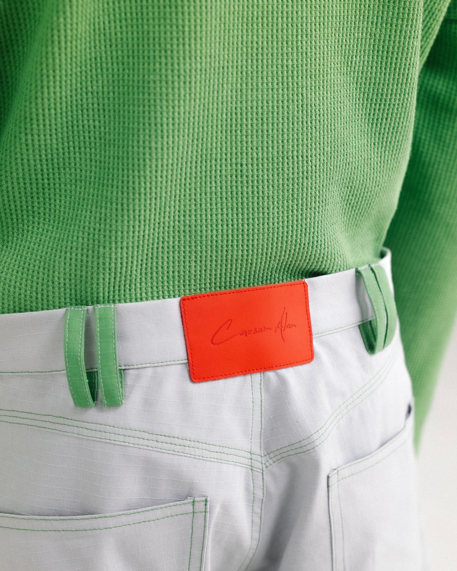CONTRAST COLOR STITCHING ON THE HEMS THAT WAS SPECIALLY DEVELOPED.